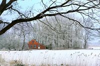 Koop de foto Huisje in winters landschap van Art by Fokje als print op canvas, aluminium dibond, (ingelijste) fotoprint, behang en ArtFrame. Voor jou op maat geprint in Fine-Art kwaliteit.
