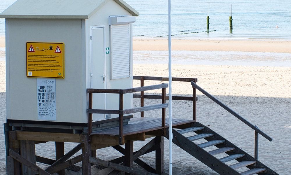 Een klein huisje op het strand bij de Boulevard in Vlissingen (Zeeland).