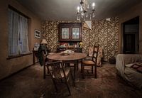 In een verlaten huis, waar zelfs de elektriciteit nog is aangesloten, en de bewoners al jaren geleden zijn vertrokken, is al het meubilair achtergelaten. Tijdens het fotograferen van de verschillende kamers bedenk ik hoe de mensen hier geleefd moeten hebben. Hoe ze aan de tafel hebben gezeten, en op de bank, hoe er in dit huis is gelachen en gehuild. De sfeer is heel bijzonder....