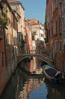 Mooie oude huizen, kanalen, bruggetjes en gondels met hun gondeliers in Venetië.
