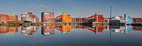Panorama beeld van Scandinavische huizen in de Reitdiephaven, Groningen, Nederland