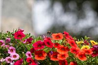 Landing nadering van een bij op de bloesem.
