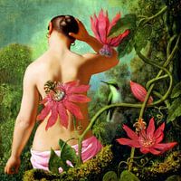 Dit is een door mij vervaardigd, digitaal collage. Het bestaat uit het schilderij “Hummingbirds and Passionflowers”, rond 1875-188 geschilderd door de Amerikaanse kunstschilder Martin Johnson Heade en het schilderij “Vrouw voor de spiegel “, in 1841 geschilderd door de Deense kunstschilder Christoffer Wilhelm Eckersberg.