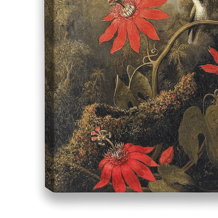 Over ‘Hummingbird and Passionflowers’ van Moonheart Artworks