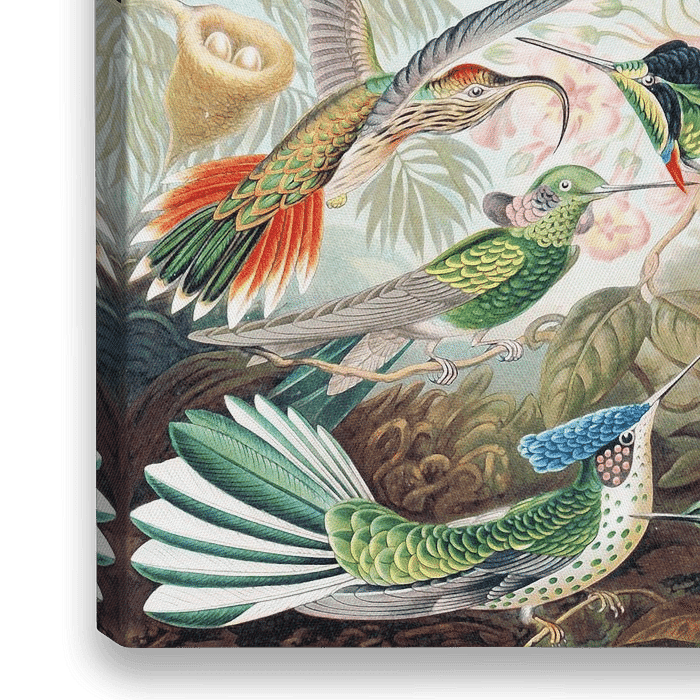 Vintage kunstwerk met een collectie van kleurrijke kolibrie vogeltjes.