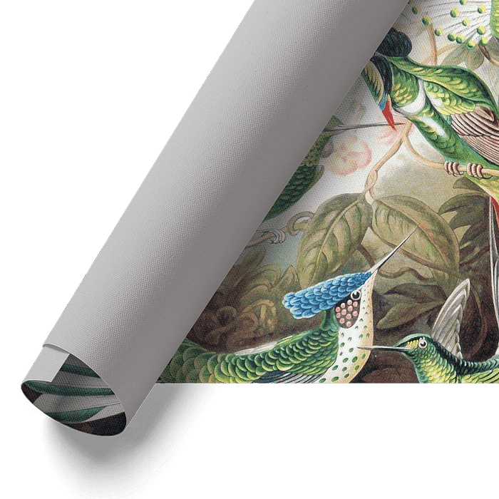 Vintage kunstwerk met een collectie van kleurrijke kolibrie vogeltjes.
