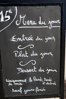 Dit uithangbord kwam ik tegen in het zuiden van Frankrijk. Om precies te zijn: in Sait-Romain de Jalionas. Voor € 15 kan u een dagmenu kopen dat elke dag anders is en toch elke dag hetzelfde is. De eigenaar van dit restaurant heeft een oplossing gevonden voor de vraag hoe je reclame kan maken die je niet elke dag hoeft te veranderen.