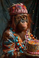 Koop dit Popart kunstwerk Humoristische foto met orang-oetan in jaren '70 disco outfit verjaardag van Poster Art Shop als print op canvas, aluminium dibond, (ingelijste) fotoprint, behang en ArtFrame. Voor jou op maat geprint in Fine-Art kwaliteit.