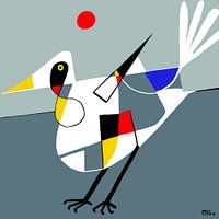 Abstracte en moderne weergave van het moeizame bestaan van vogels ivm de steeds minder voorhanden zijnde insecten door te veel gebruik van insecticiden . Jammer en triest.
