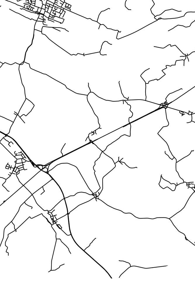 Zwart-witte landkaart, stratenplan of plattegrond van Huns. Huns is gelegen in de gemeente Leeuwarden, provincie Fryslan. Op de stadskaart zijn alle openbare wegen in Huns opgenomen. Verder is de kaart voorzien van de coördinaten van het centrum van Huns.