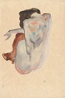 Gehurkt naakt in schoenen en zwarte kousen, achteraanzicht, Egon Schiele (1912)
