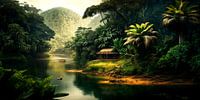 Koop dit landschapskunstwerk Hut in het Tropisch Regenwoud van Vlindertuin-Art op canvas, aluminium dibond, (ingelijste) fotoprint, behang en ArtFrame, op maat geprint in Fine-Art kwaliteit.