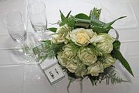 Trouwringen, Trouwboeket en glazen.