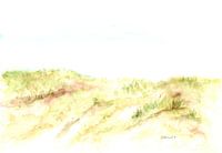 Deze foto toont een delicate aquarel met het typisch Deense duinlandschap in Hvide Sande aan de Noordzeekust.