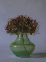 Afbeelding samengesteld uit 14 verschillende opnamen van een hyacint in een klein vaasje. Het samenstellen is gedaan in de stijl van de Spaanse kunstenaar Pep Ventosa.