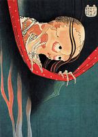 Hyaku Monogatari Kohada Koheiji" van Katsushika Hokusai is een fascinerende houtsnede die deel uitmaakt van zijn serie "Honderd spookverhalen". Dit specifieke stuk verbeeldt het spookachtige verhaal van Kohada Koheiji, een wraakzuchtige geest uit de Japanse folklore.