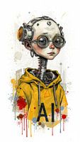 Hybrid Young Youth Kid toont een jong humanoïde figuur dat de grens tussen mens en technologie vervaagt. Het kale hoofd is voorzien van metalen platen, sensoren en bouten die direct in de schedel zijn geïntegreerd. Grote, expressieve ogen worden omlijst door ronde brillenglazen, wat het karakter een nieuwsgierige en intelligente…