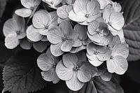 Creëer een serene sfeer in je slaapkamer met deze prachtige zwart-wit foto van een hydrangea. De minimalistische stijl past perfect bij moderne interieurs. Bestel nu jouw print!