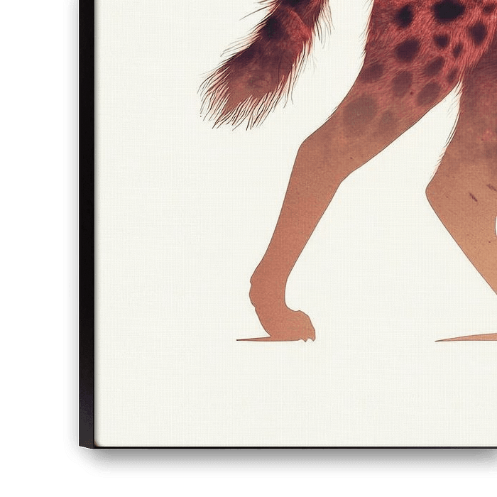 Een majestueus wezen dwaalt door een dromerig landschap waarin de zachte kleuren van de schemering zich mengen. De harmonieuze samensmelting van dier en natuur nodigt uit om te dromen en brengt een diepere verbinding met de wildernis over. Perfect voor de woonkamer, creëert een sfeer van rust en inspiratie.