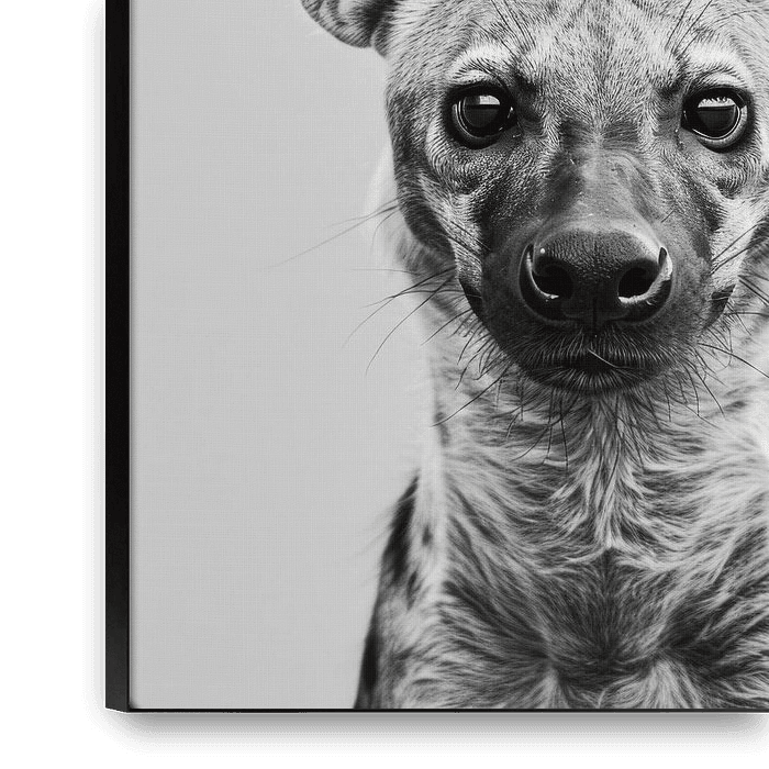 Deze indrukwekkende zwart-witfoto toont een hyena in een expressief portret. De minimalistische grijstinten en precieze details brengen de wilde schoonheid en het unieke karakter van dit fascinerende dier naar voren. Dit kunstwerk is ideaal voor natuur- en dierenliefhebbers en brengt een vleugje wildernis en avontuur naar je huis of…
