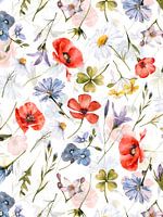 handgeschilderd bloemenpatroon met klaproos klokjes margriet en blauwe bloemen