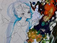 "De zwarte draad speelt de hoofdrol in mijn werken, geïnspireerd op de momenten van het leven, ik hoop de toeschouwer een moment of gevoel van herkenning te geven, een innerlijke beleving, iets waardoor je gaat dwalen in je eigen gedachten. Mijn losse draden staan voor groei & verandering".