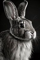 Koop de foto Hyperrealistisch zwart-wit konijn van Art & Soul Creations op canvas, aluminium dibond, (ingelijste) fotoprint, behang en ArtFrame, op maat geprint in Fine-Art kwaliteit.