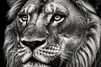 Deze prachtige close-up van een leeuwenkop brengt de kracht en majesteit van het dier op een adembenemende manier in beeld. Met zijn intense ogen en gedetailleerde vacht lijkt het bijna alsof de leeuw uit het beeld naar je kijkt. De hyperrealistische stijl maakt de afbeelding levensecht en krachtig, terwijl de monochrome tinten zorgen voor een tijdloze uitstraling. Dit kunstwerk zou perfect passen in een moderne ruimte of als een krachtig statement in een kantooromgeving. Het ontwerp straalt niet alleen kracht en rust uit, maar geeft ook een subtiele verwijzing naar de natuurlijke schoonheid van wilde dieren. Een must-have voor elke dierenliefhebber of kunstverzamelaar.
