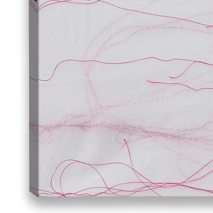 Een figuratief werk van roze draad op textiel.