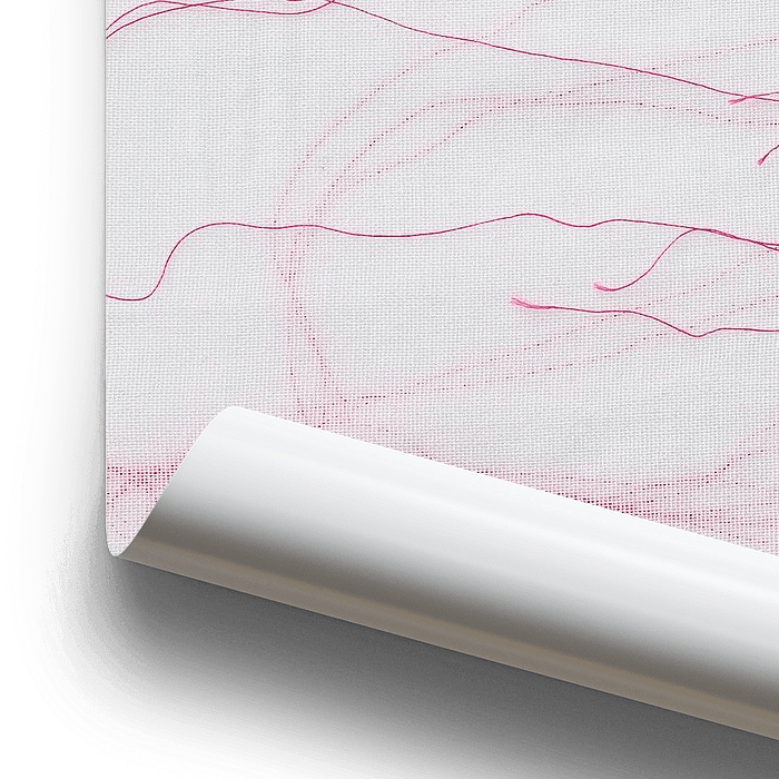 Een figuratief werk van roze draad op textiel.