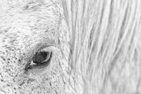 Dit wilde Camargue paard werd gefotografeerd in de moerassen van de Camargue (Zuid-Frankrijk). Er werd gekozen om heel vroeg in de morgen te fotograferen zodat er erg mooi licht is. Het is een detail van een prachtig paard. Camarguepaarden worden gekenmerkt als een erg sterk temperamentvol ras. Ze hebben donkerbruine veulens die er drie tot vier jaar over doen om te verkleuren tot deze prachtige witte paarden. Ik fotografeerde deze paarden zeer intensief gedurende een volle week in de Camargue. Bekijk ook zeker mijn andere beelden van deze Camarguepaarden.