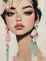 Dit portret lijkt te zeggen: "Kijk me niet zo aan, ik ben natuurlijk zo wakker geworden!" Met haar donkere ogen en een subtiele blos lijkt deze dame moeiteloos perfect, maar haar blik verraadt een klein vleugje eigenzinnigheid. Haar volumineuze lippen zijn klaar voor een dag vol glamour, terwijl haar delicate, kleurrijke en opvallende…