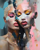 Modern portret met de titel: "I love you in pastel". Dit werk is prachtig op canvas met een neon baklijst. Ook de naturel baklijst is een echte aanvulling op dit werk!