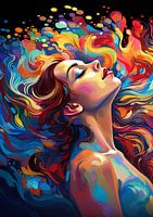 Een meisje dat droomt in kunst, omringd door kleurrijke golven, gehuld in de stijl van vereenvoudigde en gestileerde portretten. Deze kunstwerken stralen de pracht van water uit en dienen als levendige illustraties, vaak te vinden met serene gezichten. De composities kenmerken zich door hun opvallende hoog contrast, wat ze ook geschikt…