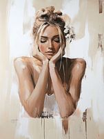 I'm a dreamer. Modern portret van een jonge vrouw met gesloten ogen in neutrale kleurtinten. Een echte blikvanger voor je interieur!