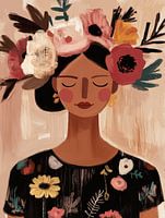 I'm a dreamer, hip portret van een meisje met bloemen in het haar. Illustratie. Een bijzondere blikvanger voor je interieur! Kies zelf het formaat en materiaal bij dit werk en maak het helemaal naar wens.