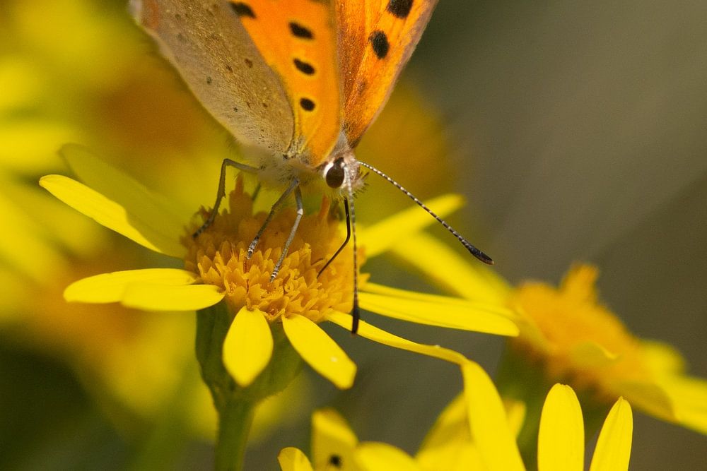 Prachtige vuurvlinder op wat wormkruid. Wat steken de kleuren mooi afen dat vind de zon blijkbaar ook want de zonnestraal rechtsboven lijkt de vlinder wel in het zonnetje te willen zetten!