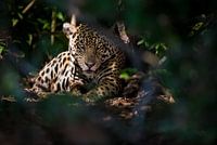 De jaguar op deze foto was lastig te zien, maar gelukkig had ik één van de beste gidsen die zelfs in schaduwrijke begroeiing deze prachtige kat nog spotte.