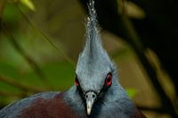 Vogel recht in de lens kijkend, verzin zelf maar een onderschrift. Perfect voor een meme. Victoria kroonduif