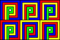De basispatronen zijn 2 x 5 L-vormige stroken in zwart. De ruimte tussen de stroken is nu gevuld met kleur.