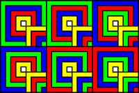 De basispatronen zijn 2 x 5 L-vormige stroken in zwart. De ruimte tussen de stroken is nu gevuld met kleur.