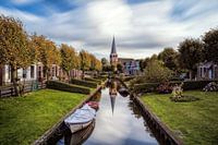 IJlst is één van de elf Friese steden en bijzonder fotogeniek met haar historische panden. Op de foto de EE gracht met aan het eind in de bocht de Mauritiuskerk. De opname is een Lange Belichting van 2 minuten (Long Exposure) waardoor de wolken als vegen in de lucht zichtbaar zijn en het water glad. In dit geval bijna een spiegeltje.