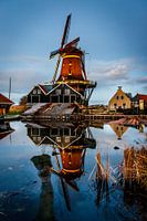 Houtzaagmolen 'de Rat' in IJlst, 1 van de elf steden in Friesland. Deze foto is gemaakt vlak na zonsondergang met windstil weer, waardoor de spiegeling schitterend uit komt en de lucht mooi blauw kleurt.