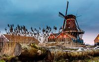 In IJlst staat de houtzaag molen 'de Rat'. De boomstammen liggen klaar om gezaagd te worden, want de molen is nog steeds in werking