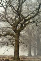 Sommige dagen zijn somberder dan andere. Deze winterdag was zo'n dag. Ik had gezien dat er een dichte mist was op de heide van de Veluwe en toen ik aankwam waren de takken bedekt met ijs, zelfs de kleinste takjes glinsterden, maar de dooi zette in en alles begon te druppelen en de atmosfeer was donker en veranderde dit tafereel in iets…
