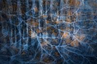 Foto van een rots met een laag ijs eroverheen. De barsten in het ijs in combinatie met het oranje van de rots zorgt voor een abstract geheel. Foto genomen op het Baikalmeer in Rusland (Siberië).