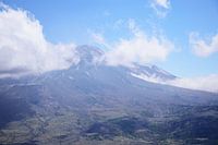 Een goed zicht krijgen op Mt. St. Helens in het Mt. St. Helens National Volcanic Monument, Washington, VS leek een onmogelijke taak. De vulkaan is constant omgeven door wolken en laat zich zelden zien. Tijdens onze rit ernaartoe kregen we echter eindelijk een enigszins fatsoenlijke blik op de vulkaan. Het ijs op de hellingen is…