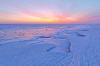 Zachte kleuren in de morgen lucht, zachte kleuren op het ijs van de Waddenzee. Het maakt me blij. Aan de oostkant van Texel komt de zon bijna op boven het bevroren Wad. Een stevige oostenwind blaast de vrieskou in mijn gezicht en met moeite kan ik de handen warm houden. Maar het ziet er zó prachtig uit. Sprookjesachtig haast. Het ijs…