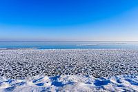 Een bevroren Markermeer met wat kruiend ijs.