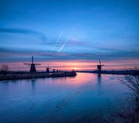 Vroeg in de ochtend, rijzende zon en het water is getransformeerd in een dunne laag ijs. Hopen op meer temperaturen onder nul en de kans op schaatsen zal toenemen.